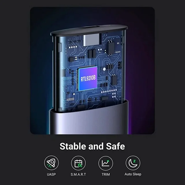 - سرعت انتقال داده بالا: این باکس از رابط USB-C استفاده می کند و سرعت انتقال داده تا 10 گیگابیت بر ثانیه را ارائه می دهد. این سرعت برای انتقال سریع داده ها از SSD NVMe M.2 به رایانه یا سایر دستگاه ها مناسب است.