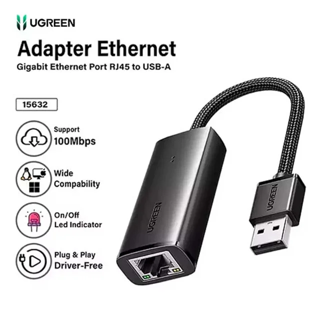 Ugreen CM650-15632 USB 2.0 To LAN Converter 100 Mbps Support