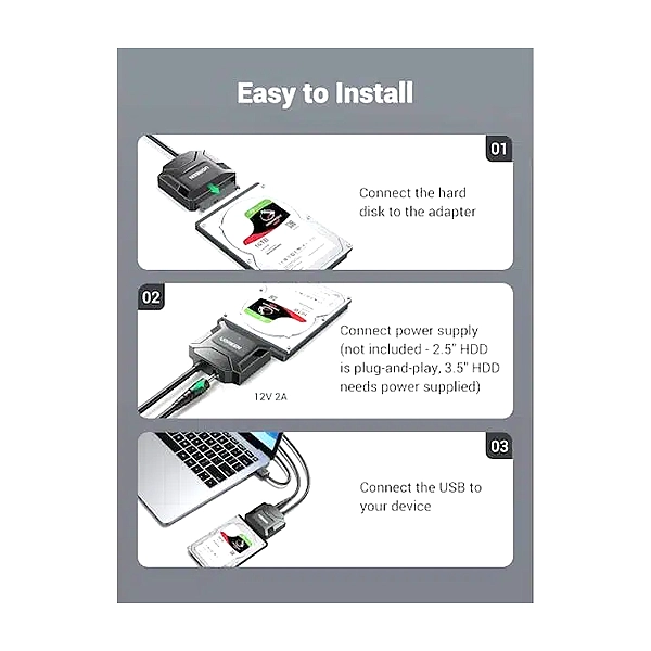 نصب و سازگاری تبدیل USB 3.0 به SATA 3.0 یوگرین مدل 20611-CR108 به همراه آداپتور