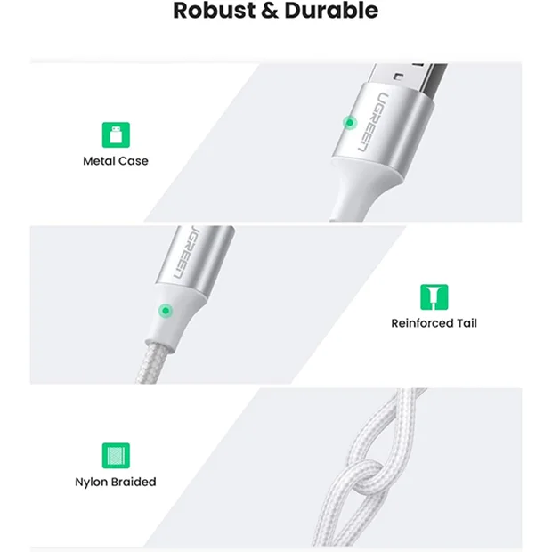 همانطور که گفتیم کابل دیتا یوگرین مدل 514 علاوه بر شارژ سریع، انتقال دیتا را با سرعت بالای 480 مگابایت در ثانیه انجام می دهد. این کابل دارای روکش نخ نایلون بافته شده، دم تقویت شده و بدنه فلزی محکم است که نشان از استقامت و استحکام بالای این محصول می دهد.