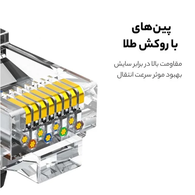 - سوکتهای RJ45 پرسی: هر دو سر کابل دارای سوکتهای RJ45 آماده است که نیاز به سوکتزنی را از بین میبرد و استفاده از آن را آسانتر میکند.