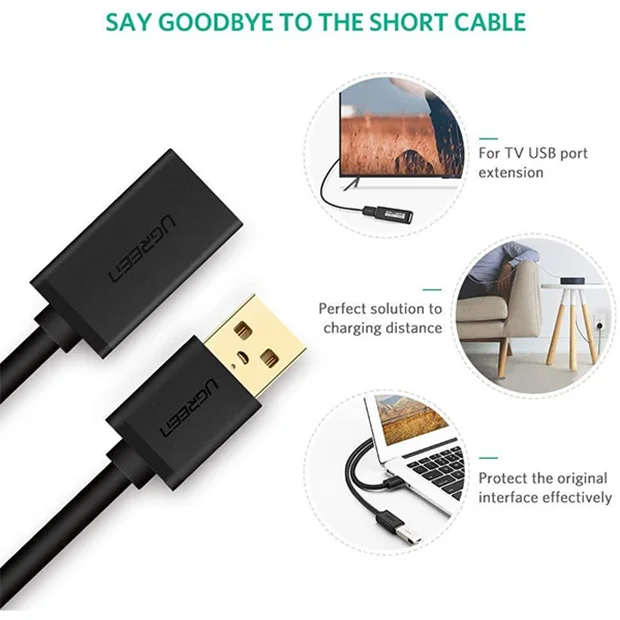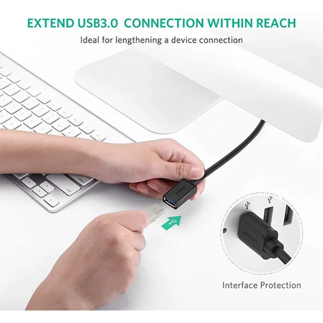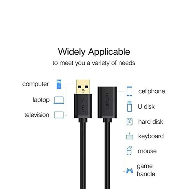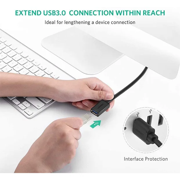 - کابل افزایش طول USB 3.0 یوگرین US129 محصول فوق العاده ای است که به کمک آن می توانید فلاش درایو، هارد دیسک، کارت خوان، چاپگر، دوربین و غیره را به راحتی به کامپیوتر و لپ تاپ وصل کنید و اطلاعاتتان را با سرعت 480 مگابایت بر ثانیه انتقال دهید.