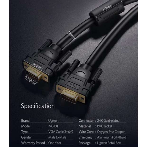 Ugreen VG101-11630 VGA Male to Male Round Cable 1.5m