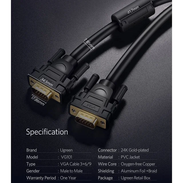 مشخصات کلی کابل VGA یوگرین مدل VG101-11630: