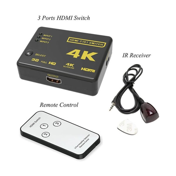 این وسیله اتصال کننده دستگاهای پخش کننده به نمایشگر بصورت جداگانه است. به وسیله دکمه تعبیه شده روی دستگاه میتوان به صورت جداگانه پورت دستگاه را سوئیچ کرد. سوییچ 3 پورت 4k UltraHD HDMI مدل UH-301 با پشتیبانی از بالاترین و بهترین کیفیت تصویری 4K Ulrta HD توانایی اتصال سه دستگاه گوناگون مانند پلی استیشن، رسیور، سینمای خانگی، گیرنده دیجیتال، دوربین، ایکس باکس (با خروجی HDMI) را به صورت هم زمان به یک تلویزیون LCD یا LED دارای ورودی HDMI را دارد. تعداد پورت 3 عدد می باشد. رزولوشن تصویر 4k Ulrta HD می باشد.