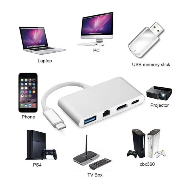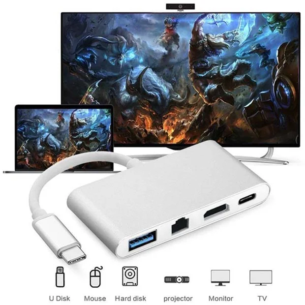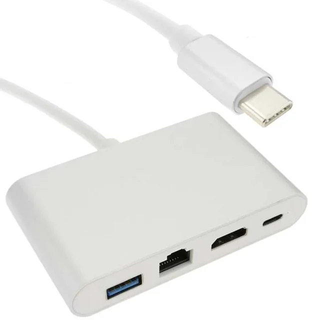 USB C To HDMI + USB 3.0 Type A + Gigabit Ethernet + USB Type C Adapter