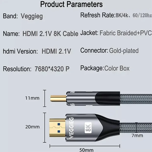 VegGieg V-H405 8K Ver2.1 HDMI Cable 5M