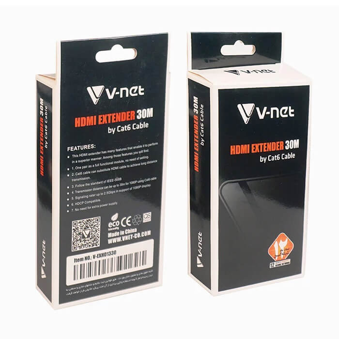 وی نت V-EXHD1330 با پشتیبانی از استاندارد IEEE-568B و کابلهای Cat 5e و Cat 6، یک راهکار قابل اعتماد برای انتقال تصویر Full HD 1080P است. این محصول قابلیت پشتیبانی از تصاویر سه بعدی و بدون نیاز به آداپتور اضافه را دارد.