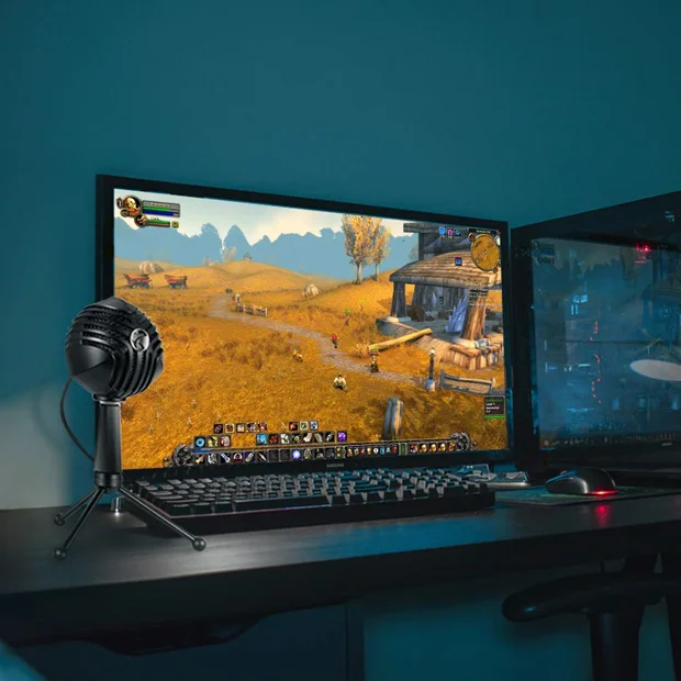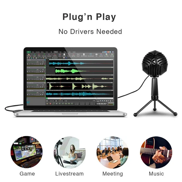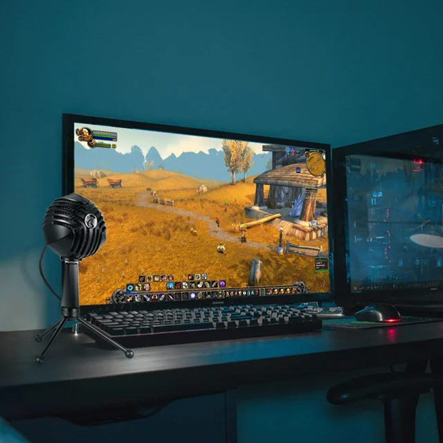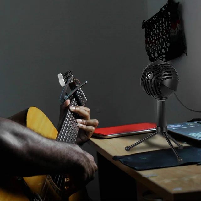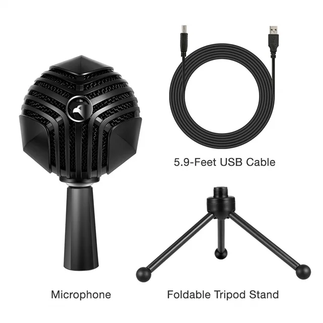 میکروفون دسکتاپ مخصوص استریم دارای دو رابط USB و AUX، دارای کنترل ولووم و قطع و وصل صدا، با الگوی قطبی کاردیودی